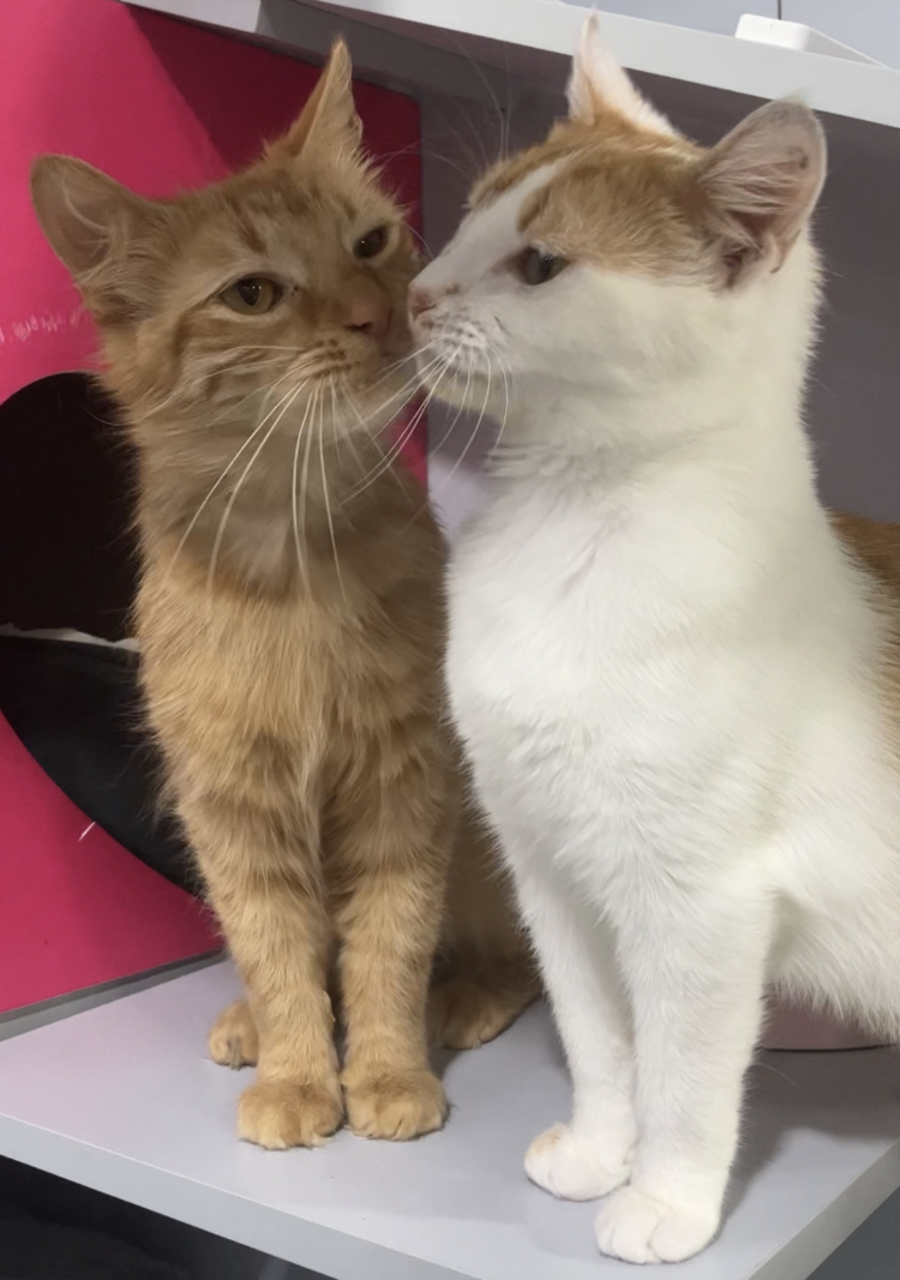 Meet Aslan and Mr. Squiggle, two inseparable feline companions who are ready to fill your home with warmth and love. This dynamic duo are best buddies who complement each other perfectly. Together, they make an ideal pair for anyone looking to add twice the affection and joy to their household.
