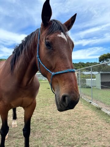 Chester is a 10 year old standard bred ex trotter. He's 16.1 hands tall and very athletic. He is currently out of work, however he goes through all his gaits effortlessly, very playful and will follow you around the paddock all day. He enjoys a scratch, leads well, is great for the vet and farrier, has the drive and want to be worked. currently barefoot.