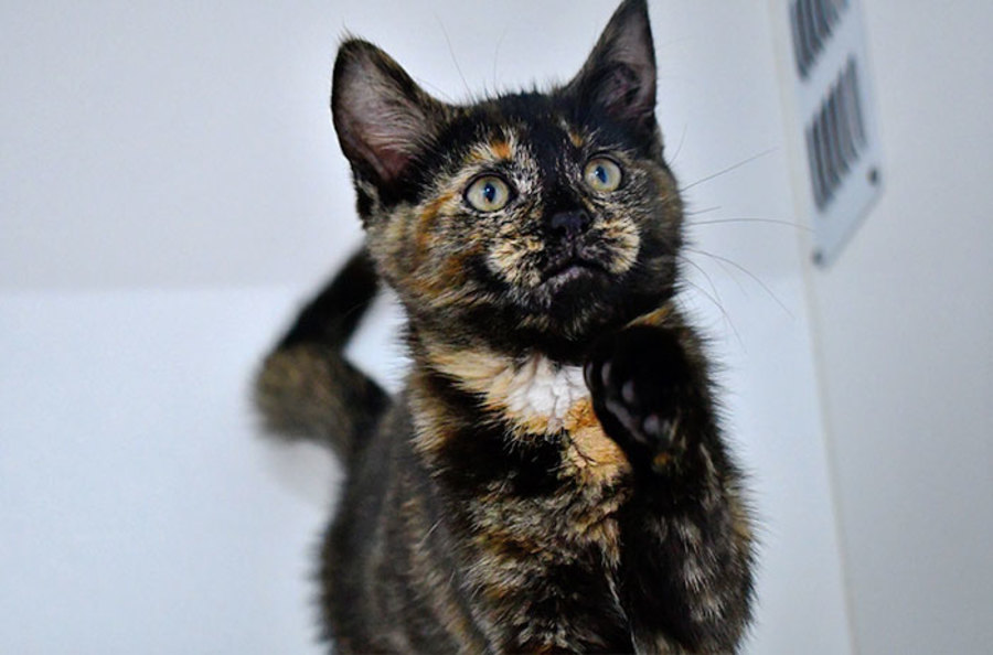 Just like all kittens, she would love a cat tree to climb on and scratch, and an assortment of toys to play with. She should be fed kitten food multiple times a day to ensure that she grow up big and strong.