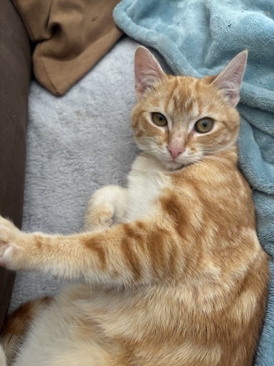 Ralphie occasionally gets scared of loud noises, so he'll do best in a calm and nurturing home where he can feel safe. He adores rolling on his back for a belly scratch, capturing hearts with his sweet demeanor. Ralphie is always eager for playtime, which promises lots of endearing cat antics.
