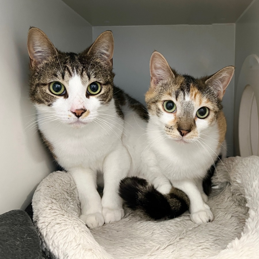 These two are inseparable and complement each other beautifully. They would love a home with cozy spaces to nap, interactive toys, and humans who appreciate the joy of having two cats that love each other dearly.