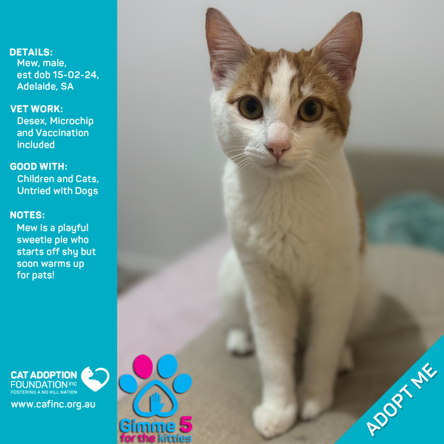 Donate to Mew Just $50 Limited Time! at Cat Adoption Foundation Incorporated via Shout