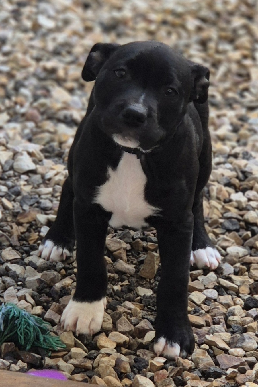Introducing Chequered, the little English Staffy with a heart of gold and a big personality! This sweet little girl is ready to fill your home with love, laughter, and endless cuddles.