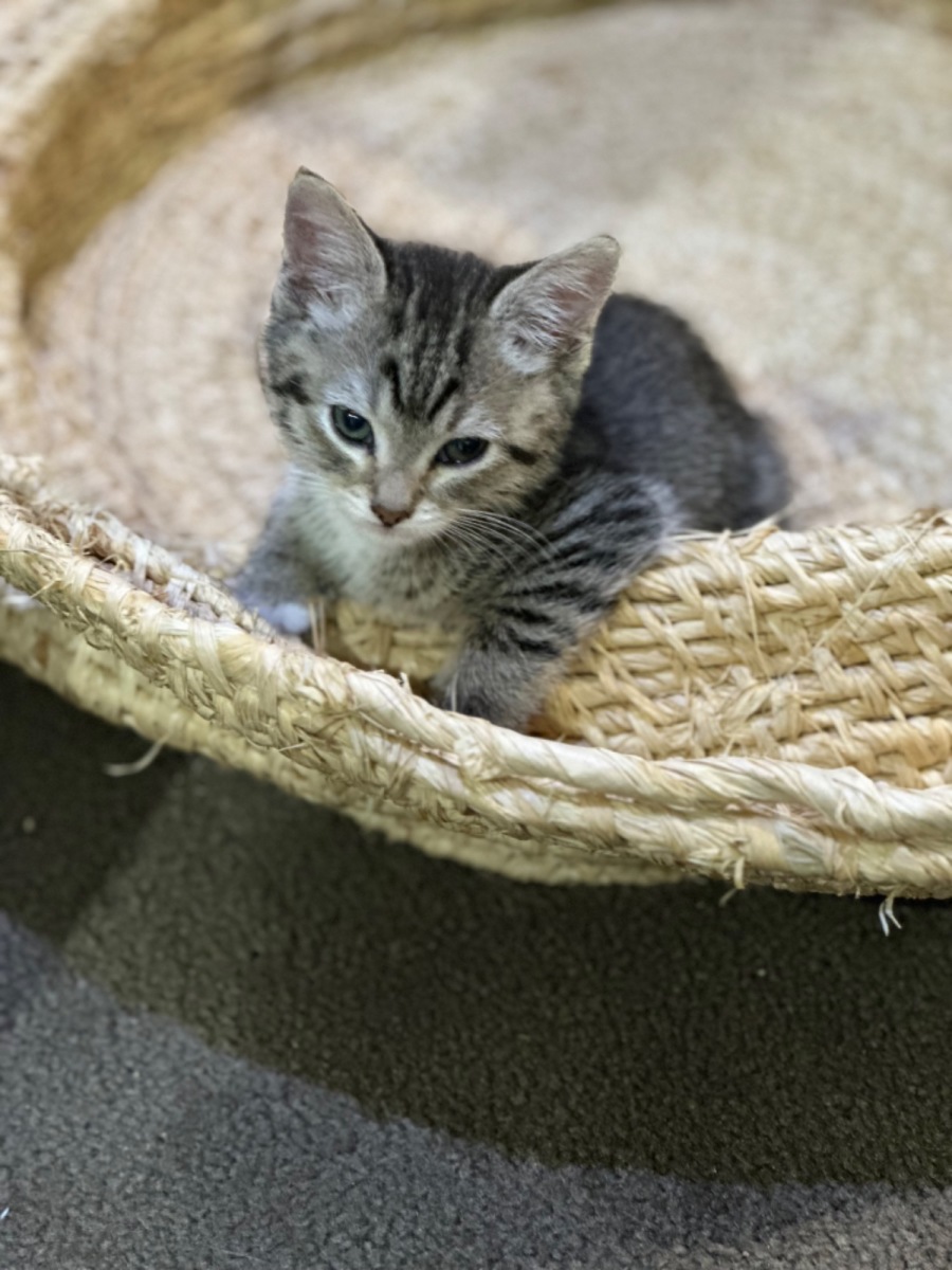 Peggy is particularly fond of spending time with her five siblings, showcasing her social side and love for companionship. When playtime is over, she transforms into the ultimate cuddle buddy, settling on your lap and offering the sweetest purrs as a soothing soundtrack to your day. Her love for lap cuddles means she's always ready to shower you with affection and warmth.