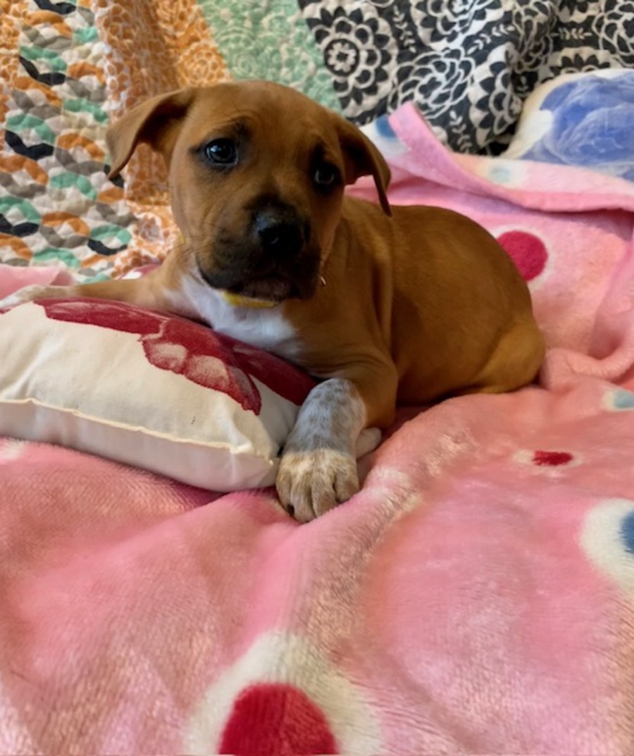 Evie is a cuddly little girl who has lots of joyful puppy energy. She would love a home with a nice sized yard and humans who take her on regular walks to the dog park or beach. Evie would be happiest with a family who allows her inside and includes her in family activities.