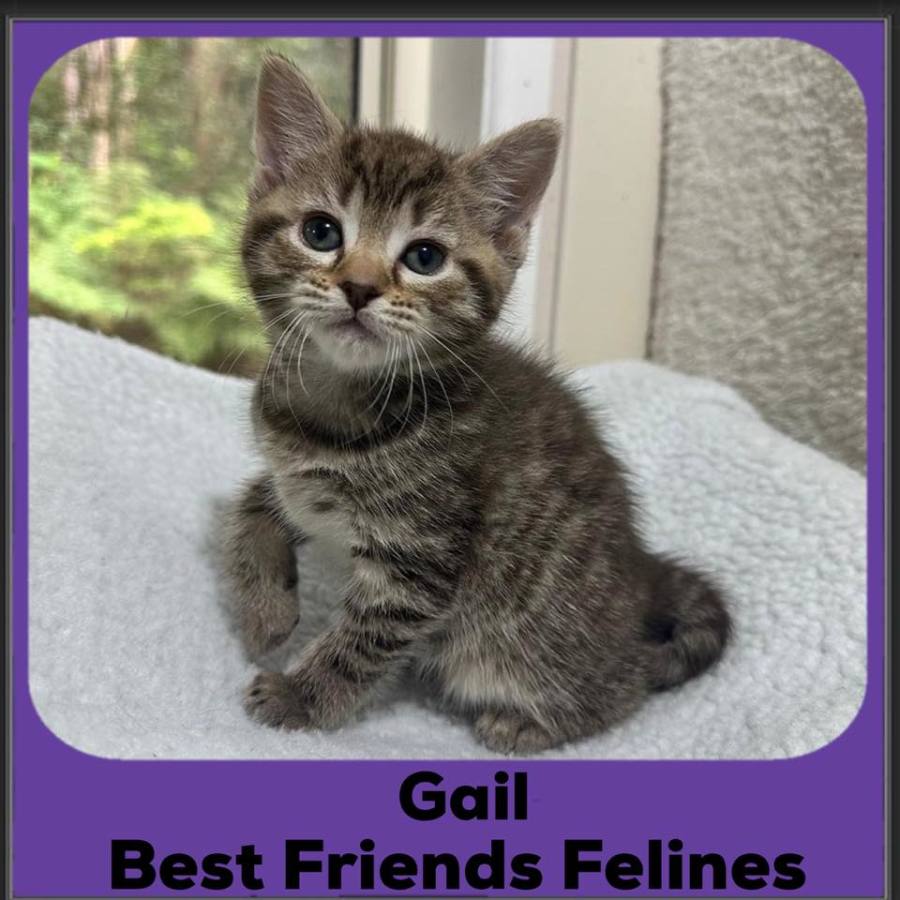 Meet Gail, a gorgeous grey-striped tabby kitten with confidence and charm to spare! The boldest of her litter, Gail is always the first to explore new things and dive into playtime with her favourite toys. But when the fun is over, she’s all about cuddles and loves nothing more than curling up in your lap for some quality snuggle time. Gail is incredibly friendly and affectionate, always seeking out attention and giving plenty of love in return. If you're looking for a confident, playful, and irresistibly lovable kitten, Gail is the perfect match for you! To arrange a meet to see if this could be your perfect match, please submit our meet’n’greet form - http://www.bestfriendsfelines.com/forms/meetngreet-form/