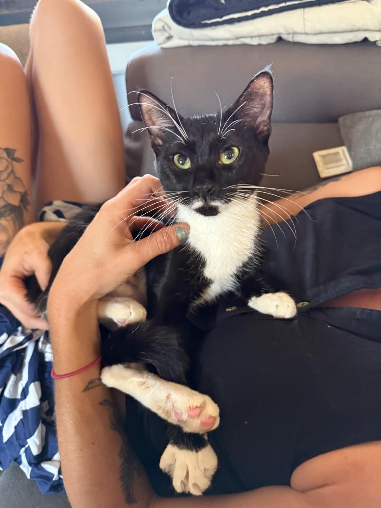Any Hazbin Hotel fans out there? Meet Husk. This little lady was born in foster care 36 hours after mumma KeeKee made her way to SAFEty. Raised in an experienced foster home with many feline and canine companions, Husk is a confident lady who will fit in easily find her place in any family.