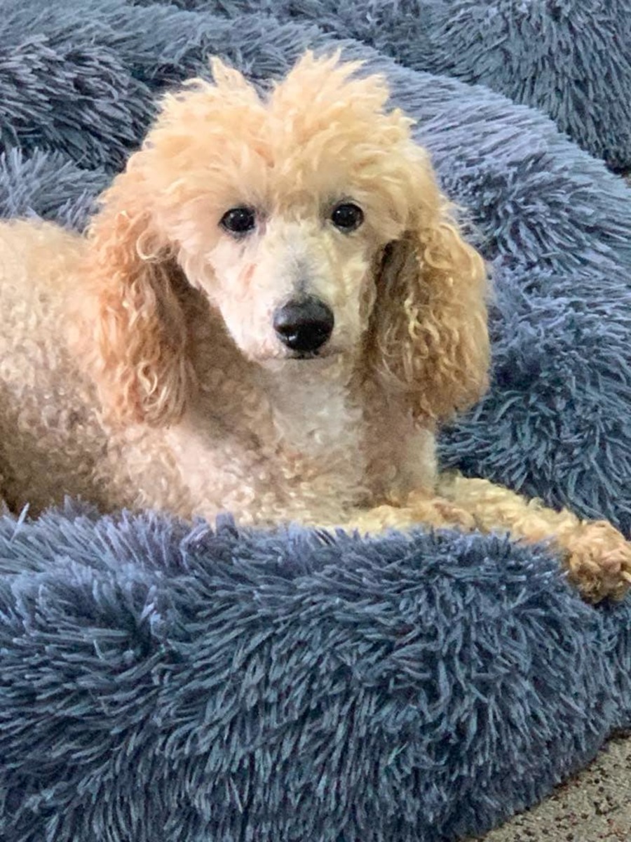 Full of beans and acting life a dog half his age, Oscar is microchipped as a Bichon x but he looks more like a Poodle.