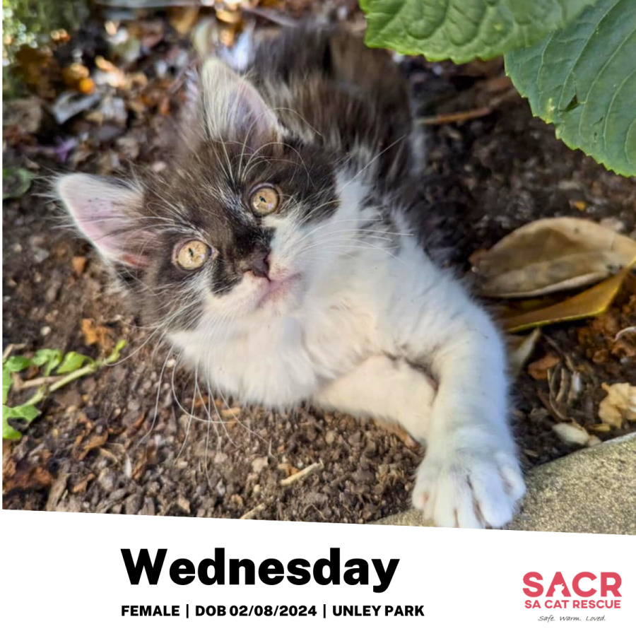 Described by her foster carer as an exceptionally social and playful girl, Wednesday has a knack for winning hearts. She loves to follow you around the house, ensuring she is never far from her beloved humans. With plenty of lap cuddles and smooches to offer, her companionship is a treasured gift. In addition to her human family, Wednesday loves other cats and kittens and gets along beautifully with her feline friends.