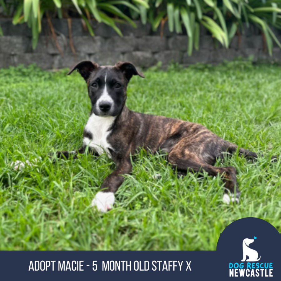 Macie is a delightful 5-month-old Staffy mix with a heart full of love and energy to spare.