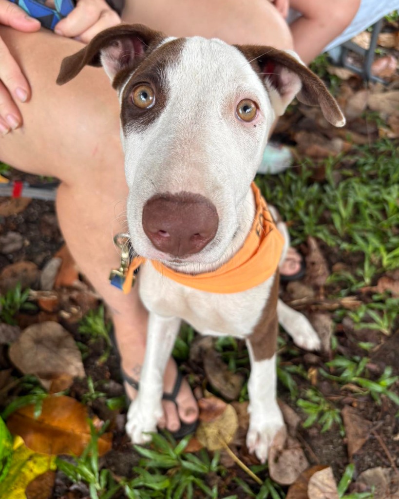 Raya is a beautiful four-month-old Bull Arab/Greyhound mix that is looking for her forever home! Her foster carer says she is a lovely dog with a nice nature that loves to play. She currently lives with several other dogs so would fit in well with a family that already has a dog, but she hasn’t been introduced to cats. As Raya is still a young puppy, she would be best suited to a home where her new family is dedicated to continuing her training (she already knows ‘sit’!) and where any children are older. She is currently an outside dog, but she is mostly house-trained so it would be easy for her new family to transition her to an inside or inside-outside dog if they wished.