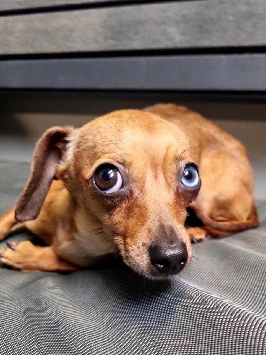Meet Aura, a sweet and shy little Chihuahua cross with a gentle soul. At 4 and a half years old, Aura is a delightful companion who is seeking a patient and loving new family. Though she may be a bit timid at first, with time and consistent care, Aura blossoms into a loving and affectionate friend.