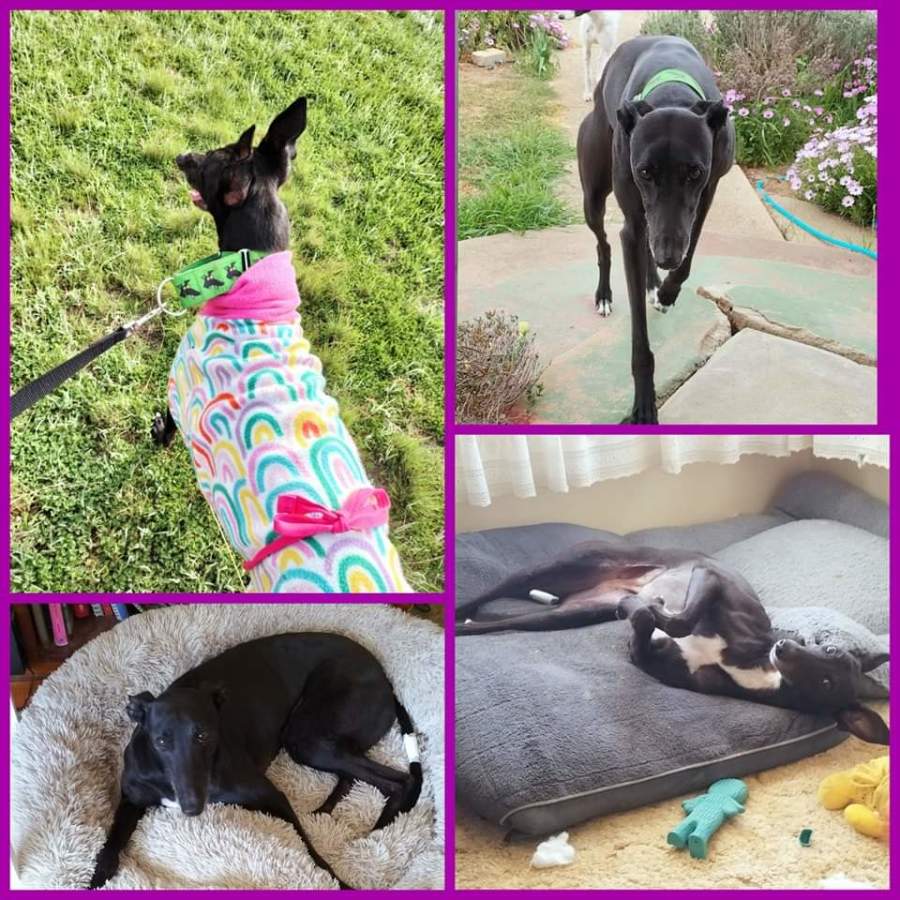 Delta is an active girl that gets on well with other greyhounds. She loves to play with toys - particularly squeaky ones. She will play fetch with a ball.