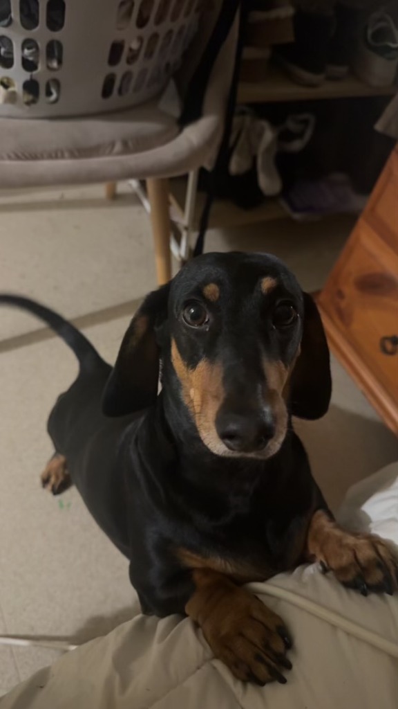 Weenie is a fun-loving, lazy little guy who is always ready for cuddles and snacks. He’s obsessed with toys, especially teddy bears, and loves to steal other dogs’ toys when given the chance. He’s great with kids, cats, and big dogs but isn’t fond of guinea pigs, as his instincts take over. While he’s mostly lazy and enjoys napping all day, Weenie also likes short walks—though don’t be surprised if he expects to be carried after a while! He can get a little too excited at times, resulting in harmless nips or an occasional "happy accident," but he’s a loving, playful pup.-
