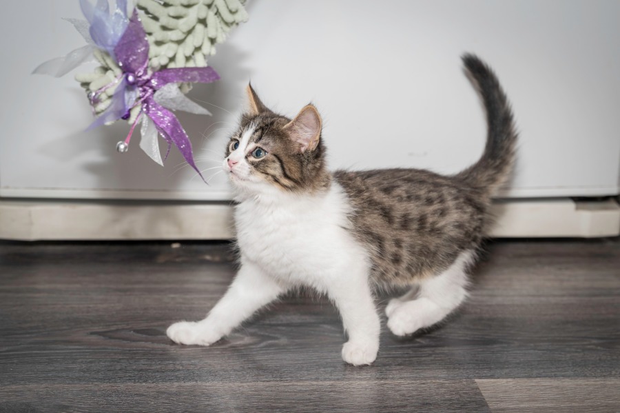 Lucifer is a delightful little kitten full of personality and love! He gets along famously with his siblings and mom, making playtime a blast. While he's a bit anxious around dogs, he's a total sweetheart with children, bringing joy and affection to every interaction. Just like any pet, he should be supervised with young kids, but he's known for being gentle and friendly!