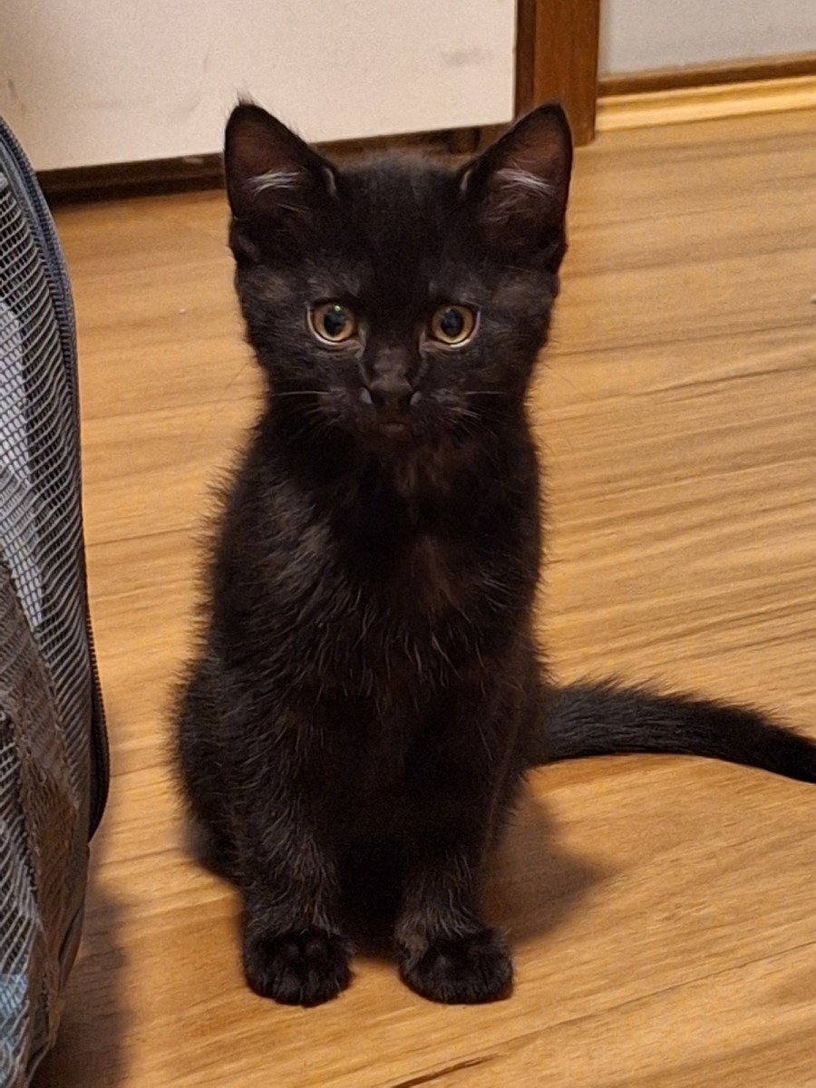 Spooky is a sweet little girl that loves to play. She is a little shy with new people but will settle down in the right home and make a loving and playful kitten.