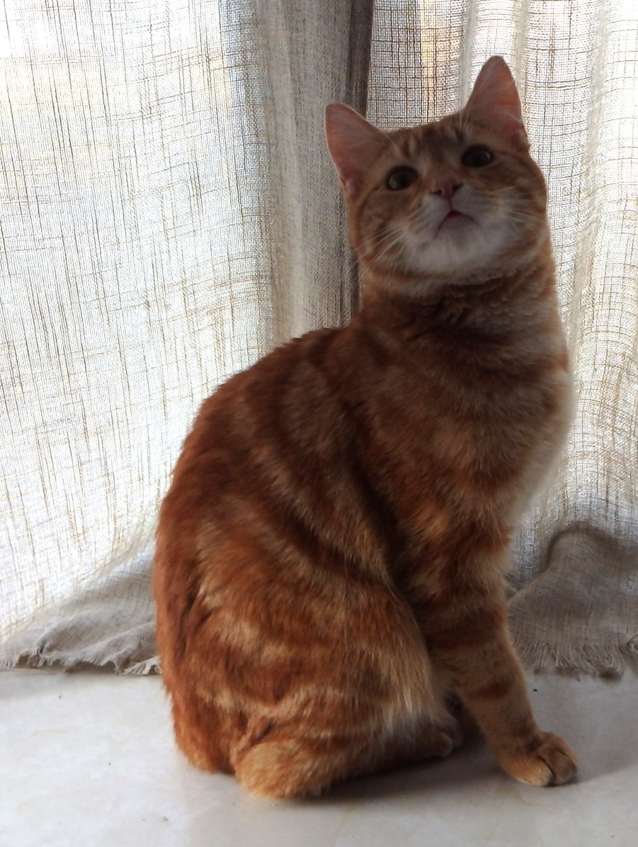 He is such a sweet beautiful boy,he is about 8 months old,small in stature,large in personality.