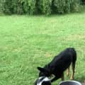 Milly is great with other dogs when out and about, as well as with other domestic animals such as cats, horses and chooks. However, she has a strong prey drive towards wild animals including kangaroos, possums and rabbits, and would be very keen to chase any of these if she has the opportunity. However, she does not appear to have any inclination to jump fences or to escape and has been an easy dog to have in the back yard providing the possums donât come out to tease her!