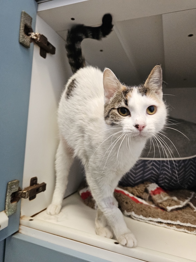 Meet Tachi, the little lovebug you didn't know you needed in your life! Petite in size but HUGE in heart, Tachi has one mission: to make every day a love fest. This sweet girl isn't shy when it comes to showing her affection. She'll roll around at your feet, lean in for face rubs, and purr up a storm as soon as you give her a bit of attention. If you're looking for a cat who is all about the cuddles, Tachi is your girl!