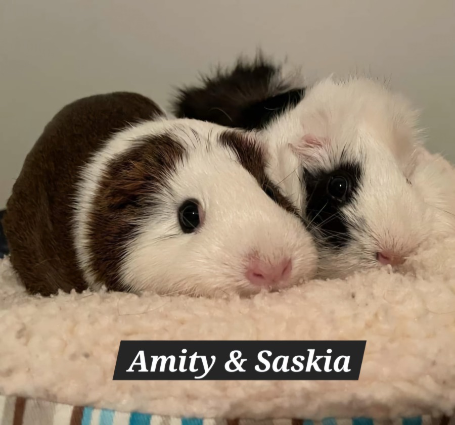 Amity (smooth) and Saskia (abby) are two very sweet but very shy 2.5 year old girls who are keen to find their forever home with unlimited hay and WiFi. They adore eating pig n mix, oxbow pellets, cucumber, celery, carrot and fancy lettuce. Their favourite thing to do is dive into a big pile of hay and snooze in there or run up and down their ramp.