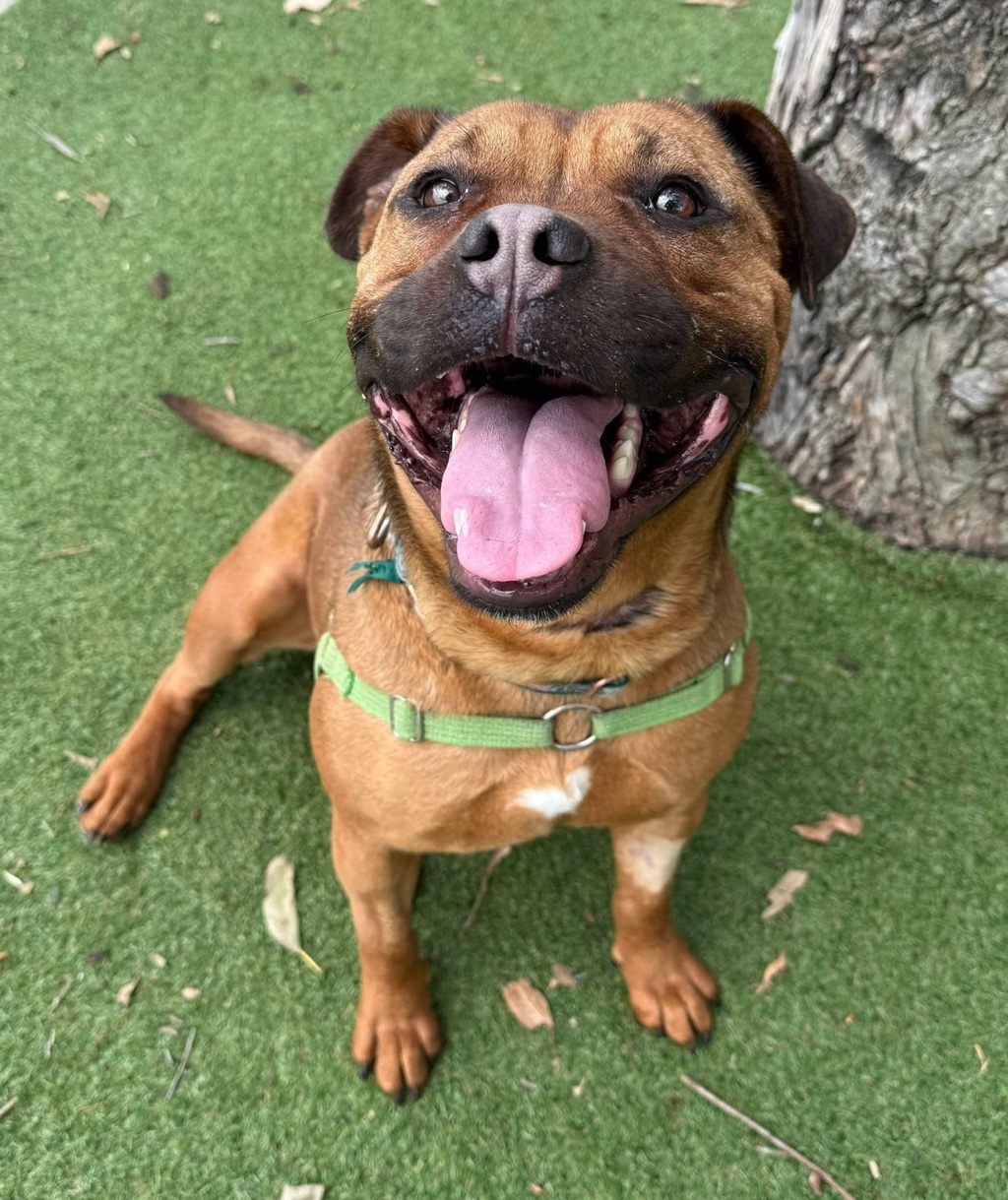 This girl LOVES food - and we mean any and all kinds! From kibble to a woolies roast chook, Cherry's motto is "taste first, ask questions later." Thanks to her passion for treats, training this foodie is a breeze. She's strong on the lead so she'll need a fit, steady owner to help her brush up on her leash manners. But don't worry, her people-focused heart makes her a quick learner especially when treats are involved.