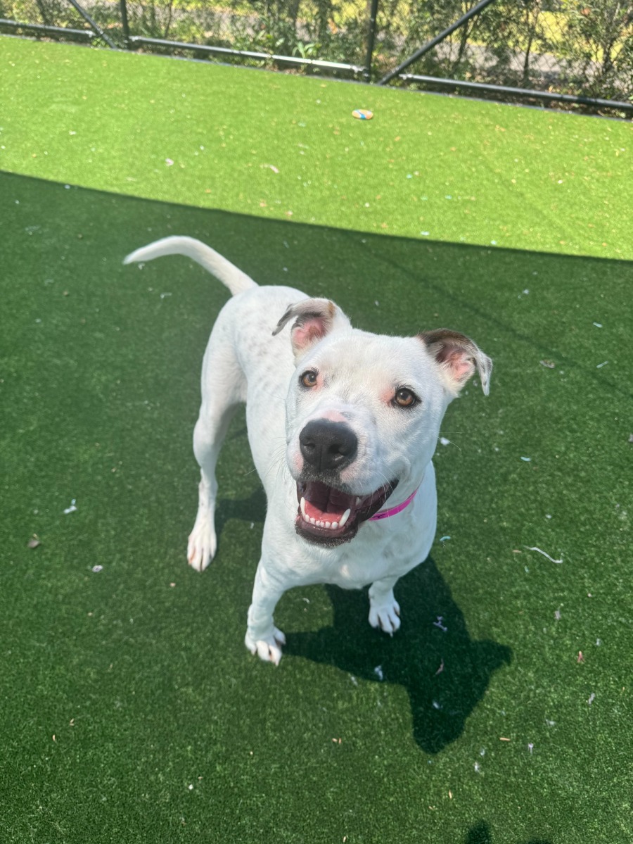 Lola does get a bit jumpy, but her enthusiasm is a delightful part of her charm, especially for families with energetic kids who can match her playful spirit. While she’s happy to entertain herself when needed, Lola thrives on affection and would adore being part of a loving family. With a bit of guidance, she can learn the ropes of doggy socialisation, as she’s still figuring out how to engage with her fellow canines.