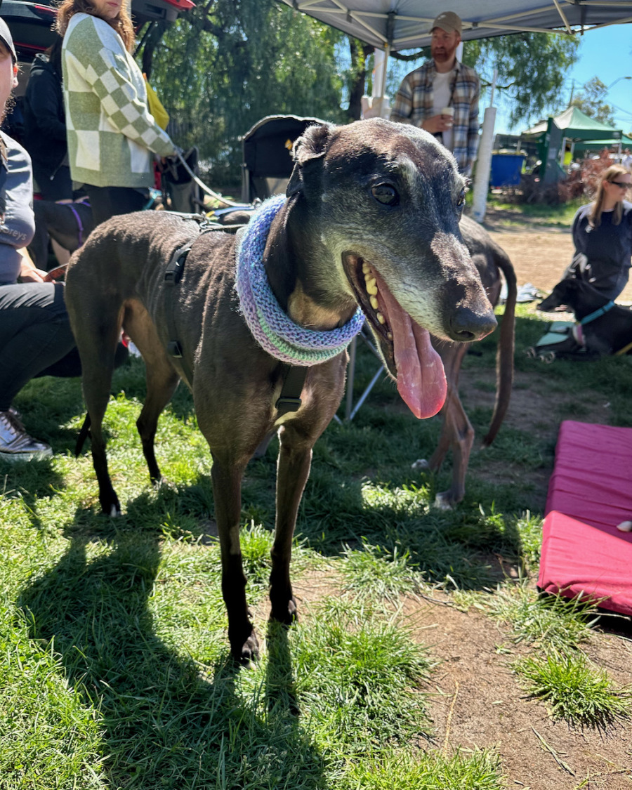While Alicia shares her foster home with a resident male greyhound, she would need a calm and tolerant dog in her forever home as she can be a bit bossy and doesn’t have manners when it comes to pushing in to get her share of the human attention, ensuring she has the best spot on the bed, and even helping herself to her siblings toys. Alternatively she would happily be an only dog in a home where her humans were around more often than not.