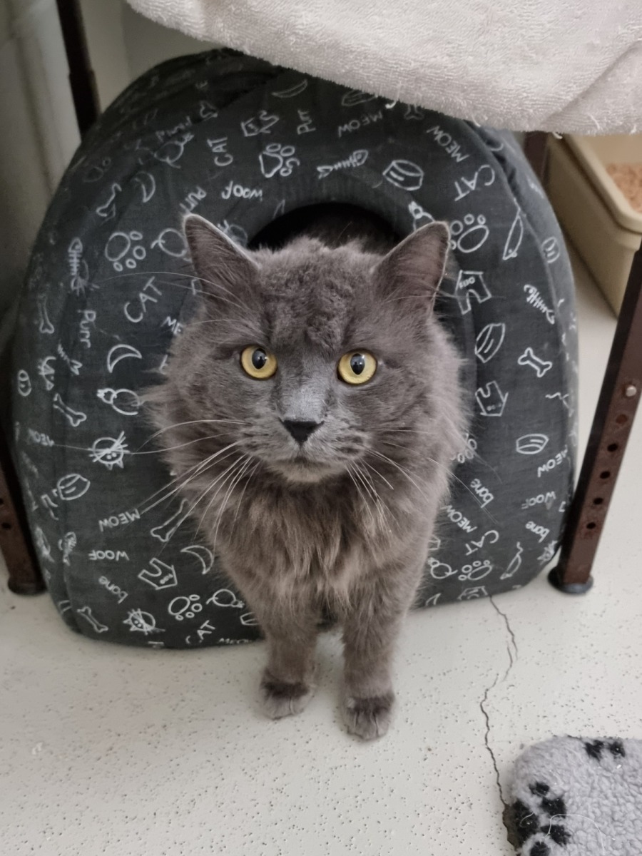 I can be a bit nervous sometimes, I am still finding my confidence but I love my food and can be quite an affectionate smoocher when I am comfortable around you. I am happy sleeping in my bed and keeping you company.