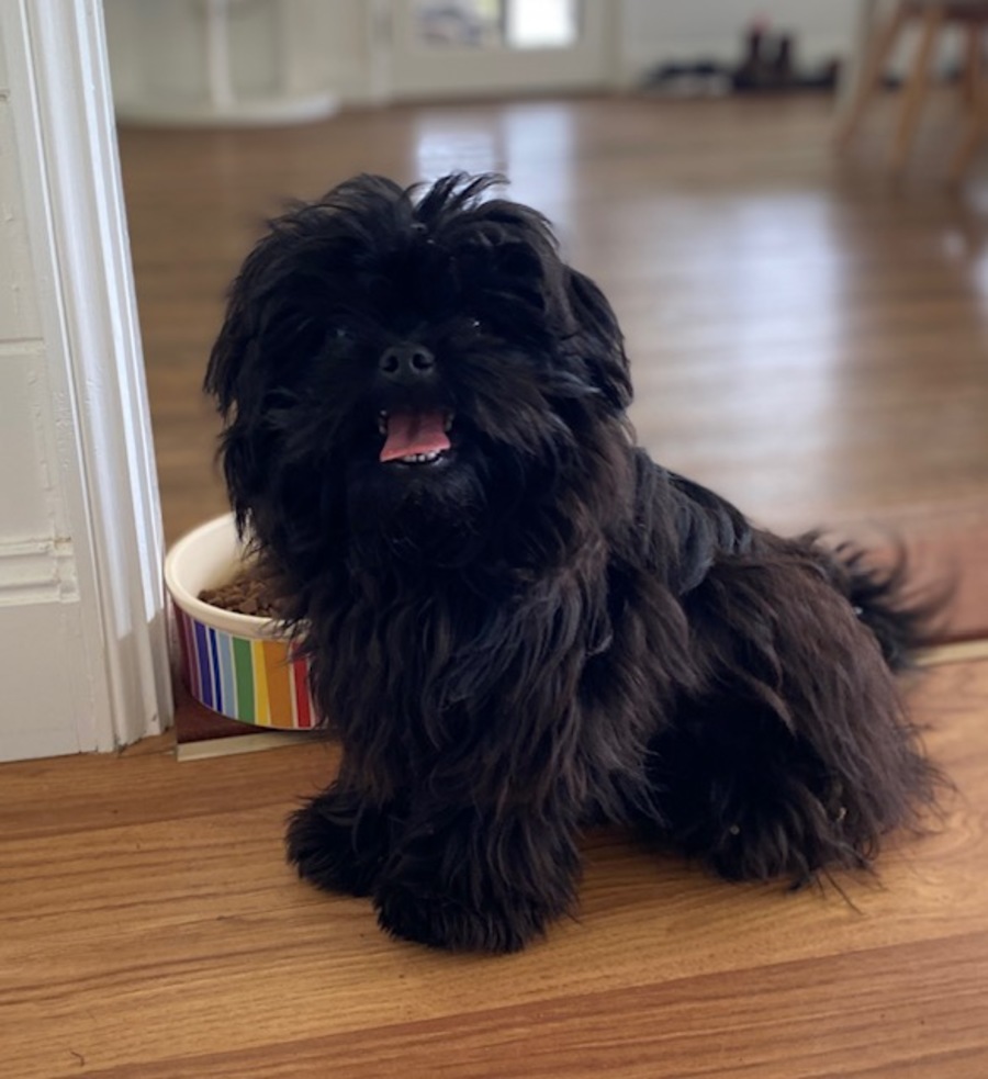 This is Kenny, a handsome boy with a cute little upturned nosewho’s a perfect blend of smart and mischievous. His heritage is Pekingese/Poodle, a low shedding mix.