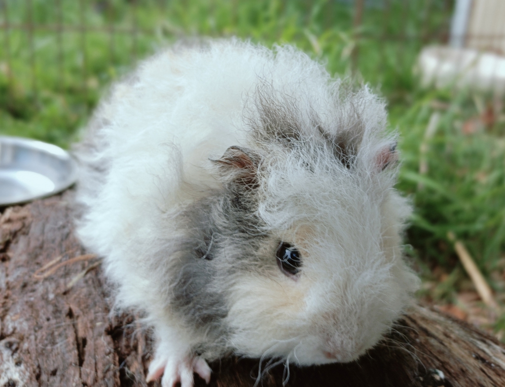 Penny is a 6-week-old female guinea pig with a Texel mix breed, sporting a lovely curly frizzy coat that makes her look like the cutest little fluffball you've ever seen. Despite her young age, Penny is a calm and well-handled girl who enjoys the company of other guinea pigs. She has a healthy appetite and loves fresh fruit, veggies, green grass, and special guinea pig food. Penny is definitely a vocal little girl who loves to squeak with excitement, especially when she knows treats are on the way.