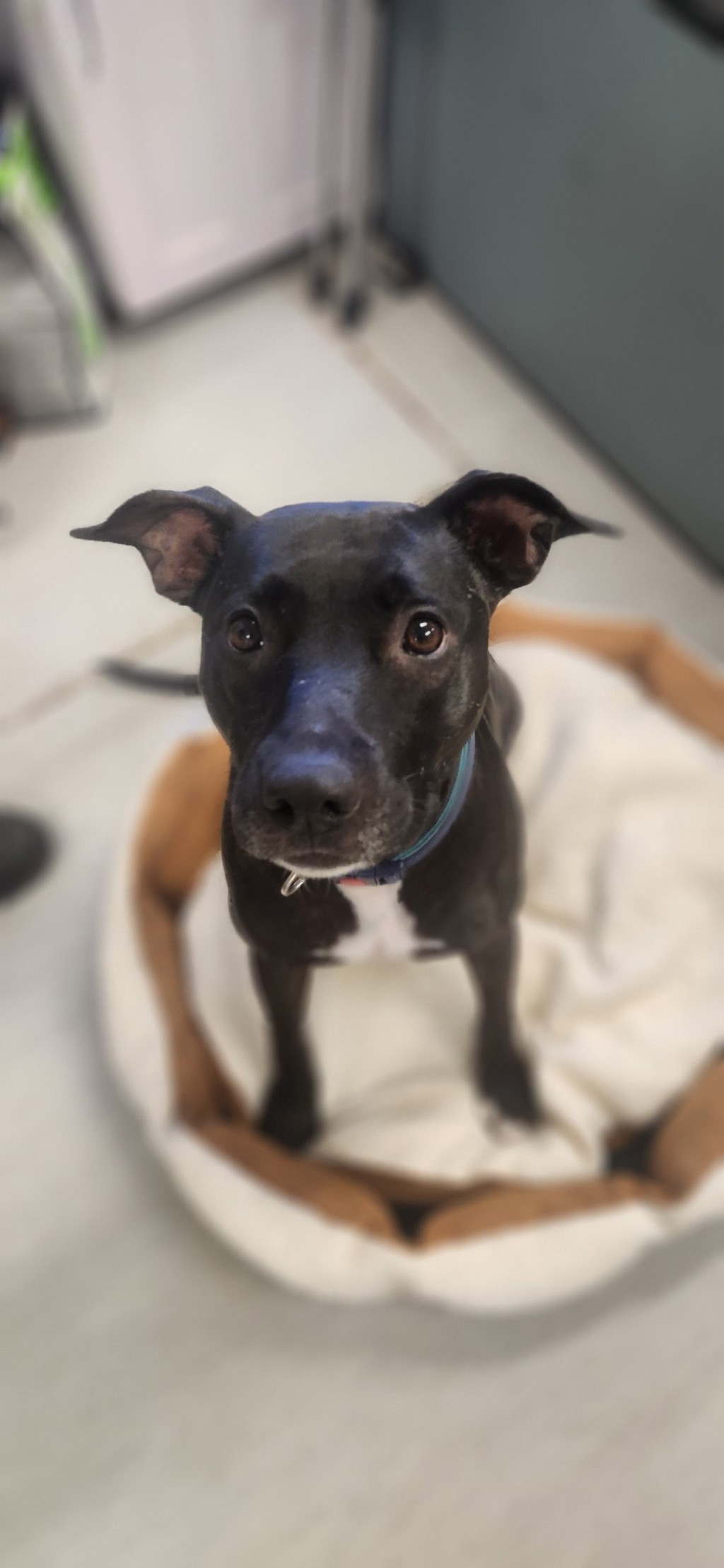 Meet Midnight, a sweet Staffy with a heart full of love and a playful spirit! This adorable girl is looking for a forever home where she can be the only dog, soaking up all the attention and affection her new family can offer. Midnight thrives on daily exercise, so she'd love a home with plenty of opportunities for playtime-whether it's a game of fetch in the yard or adventurous walks around the neighborhood. After a fun-filled day, she enjoys winding down with cuddles, ensuring that you'll never feel alone. Midnight is a loyal companion, ready to shower you with love and joy. If you're looking for a devoted friend to share your life with, Midnight might just be the perfect match! Come meet her today and discover the love and happiness she can bring to your home.