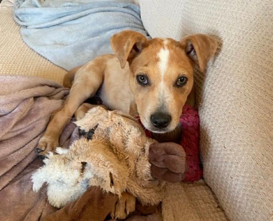 Max is a beautiful, lively three month old Coolie x Cattle Dog. He loves playing with toys and other dogs, but once he is tired, he is happy to snuggle up to his people.