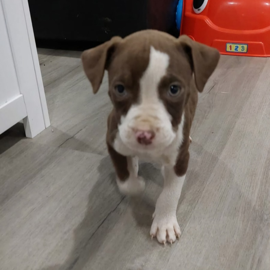 Meet Yoda, a lovely pup who is as gentle as he is friendly. This little guy's mum was rescued from a pound while heavily pregnant. He has inherited his mom's sweet nature, making him an excellent companion for families, especially those with children. His cheerful disposition makes him a joy to be around, always ready for some playtime or cuddles.