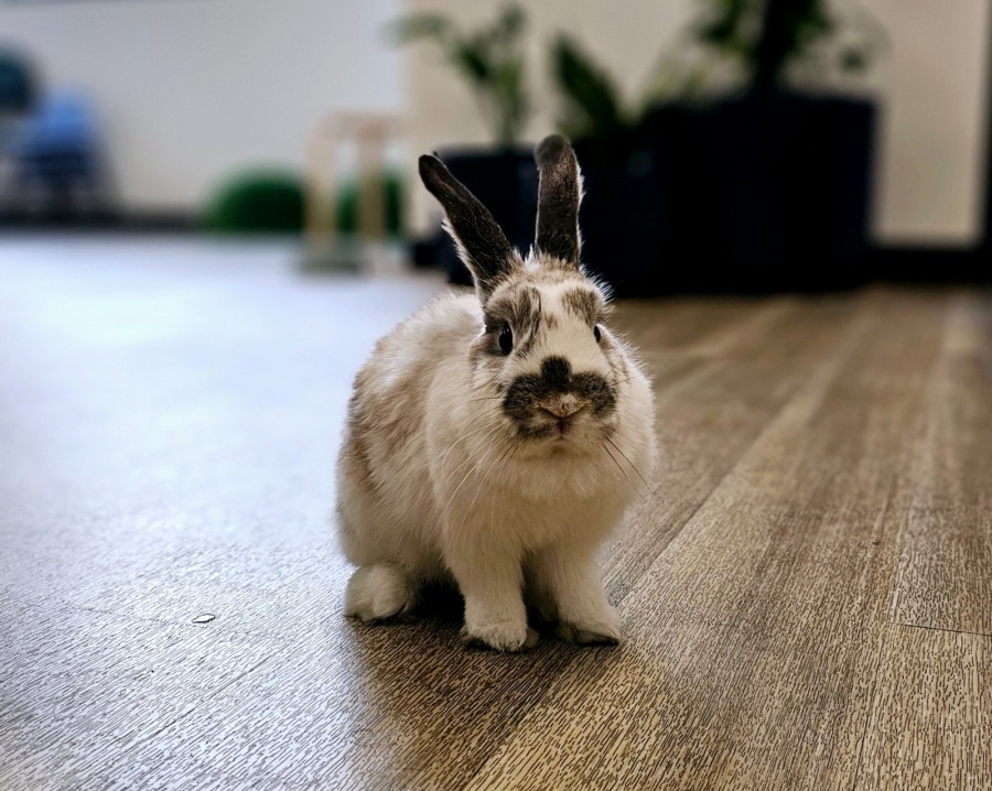 April is full of personality, showcasing lively bursts of energy in her zoomies, where she gleefully races around, turning any room into her personal bunny track. Her playful antics are sure to provide endless entertainment for her new family, making her the perfect pet for those who appreciate a little playful chaos mixed with genuine charm.