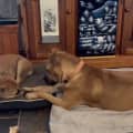 She loves to be near you and will lay down wherever you are, inside or outside, occasionally looking up to check out what you’re doing.