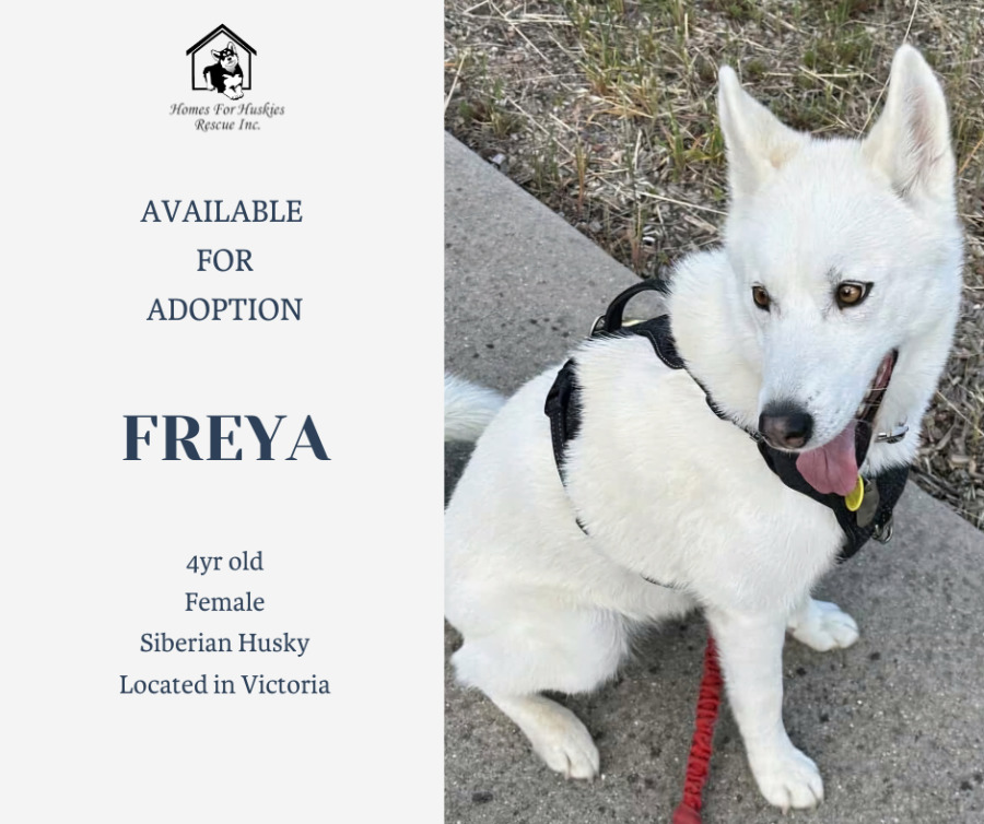 Introducing gorgeous wee Freya, an adorable little four-year-old husky all ready for her forever home. Freya was well loved by her previous owner who had her from puppyhood but unfortunately had to give her up when he joined the ADF. She was never abused and had everything she needed.
