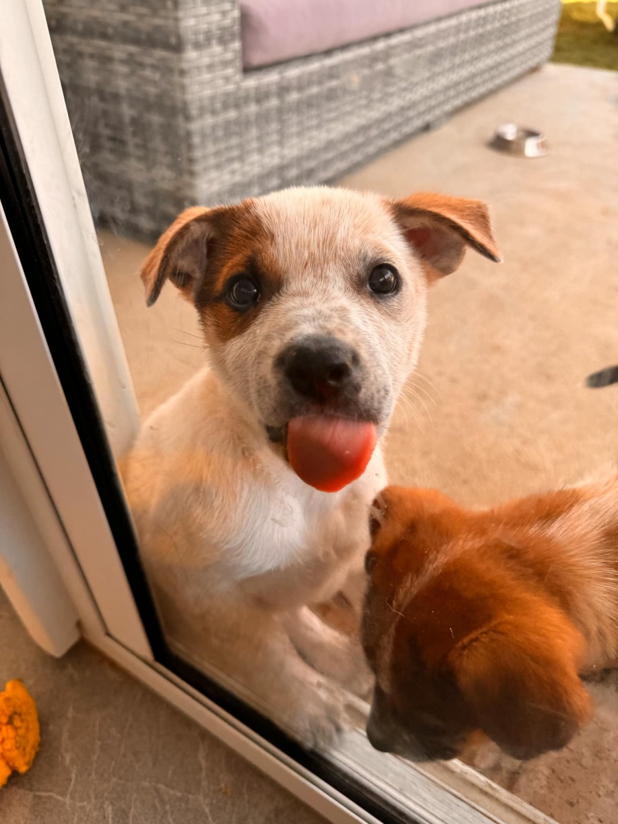 Meet Croissant, a charmingly playful and cheeky young pup who effortlessly captures the hearts of both animals and people. This delightful pooch has been thriving in a diverse household, living harmoniously with a senior Staffy and a lively young Kelpie. Croissant joins in on energetic play sessions with the Kelpie, and when it's time to wind down, he curls up contentedly beside the Staffy for some cozy snuggling.