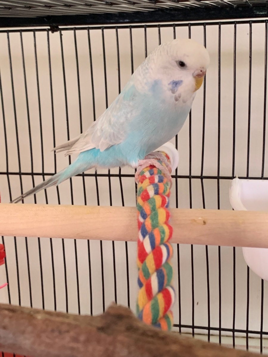 Her favorite snack is corn, which she eagerly nibbles on whenever given the chance. You'll often find her chirping away happily as she interacts with her environment, her gleaming eyes captivating all who look at her. This darling budgie is more than capable of making anyone smile with her playful antics and heartfelt sweetness.