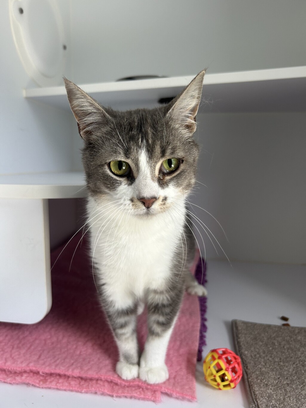 Violet is a sweet, shy girl who needs an understanding home that will give her the time she needs to adjust. She thrives in a quiet environment and enjoys gentle interactions. Violet would benefit from continued positive interactions to further build her trust and confidence. Violet is a cat who likes to relax and once she settles in she will show you her lovely personality.