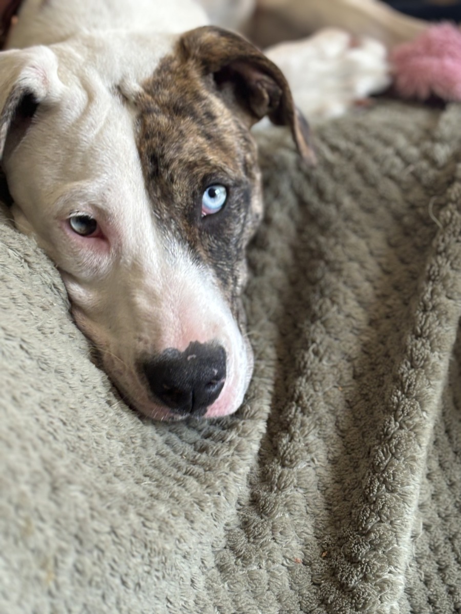 Her unique mix of Catahoula Leopard Dog X Bull Arab gives her a fantastic work ethic, intelligence, and an eagerness to please – but with that comes a need for guidance. She’s a clever girl who learns fast but will benefit from structured training to help her develop her manners and refine her skills. Right now, she’s still working on things like leash etiquette and basic commands, so she’s looking for an owner who can offer patience, consistency, and a lot of love!