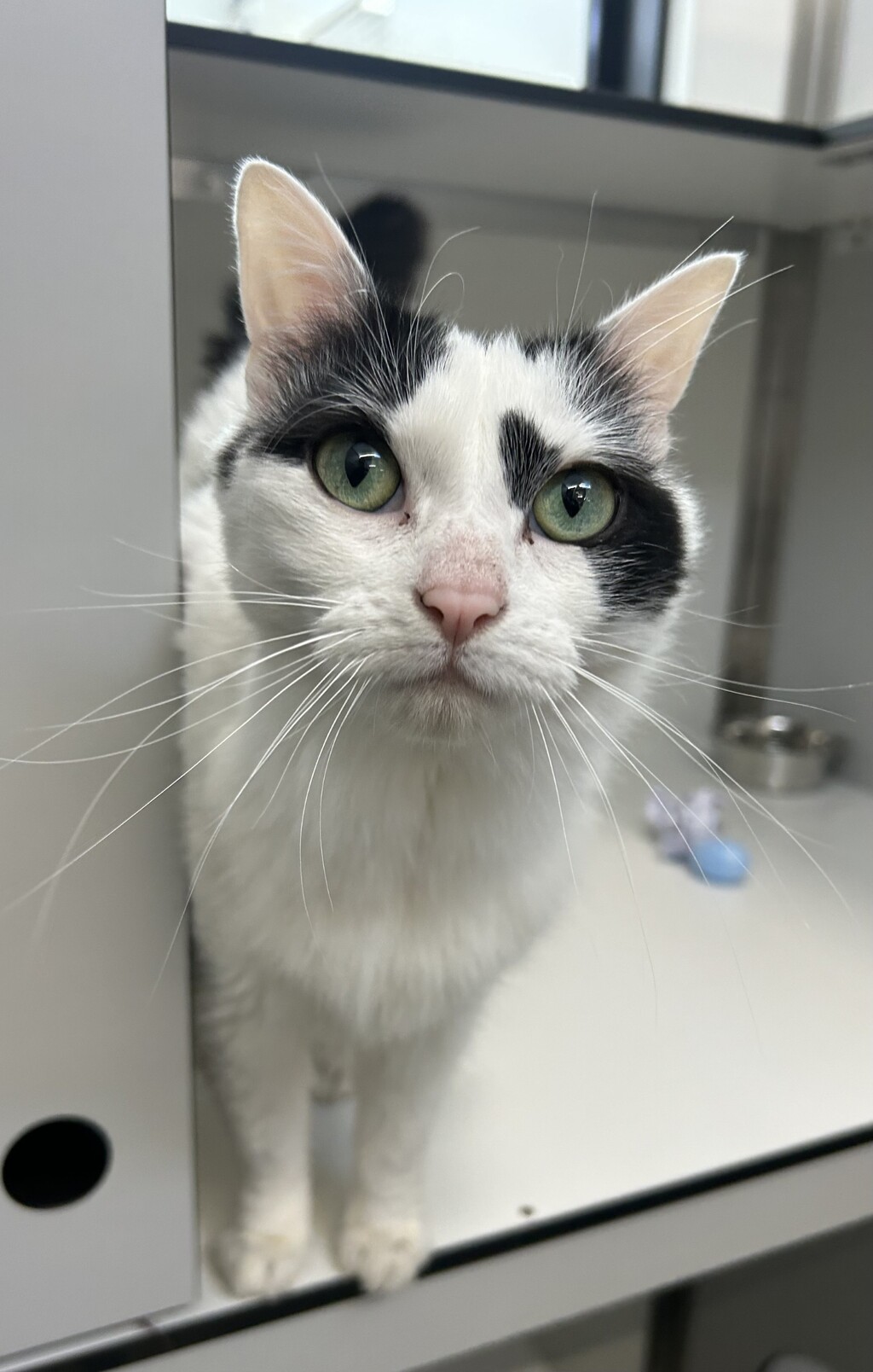 Bonnie is a sweet black-and-white domestic medium-haired cat who may be shy and timid at first, but with time and patience, she'll warm up and become a loyal, loving companion. She needs a calm, understanding home where she can feel safe to adjust at her own pace. Once she trusts you, Bonnie will show her affectionate side and enjoy quiet snuggles. She's the perfect cat for someone who's patient and ready to build a bond with a gentle, loyal friend. Give Bonnie the time she needs, and she'll reward you with unconditional love.