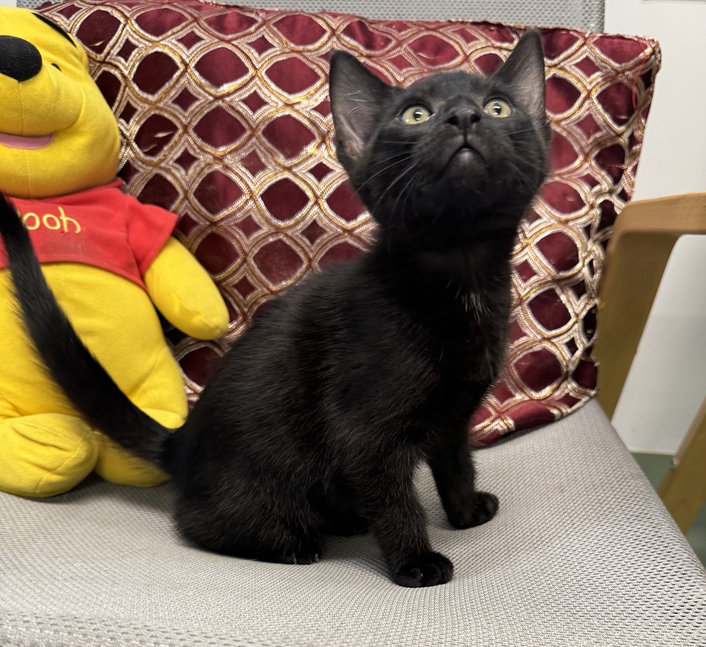Meet Bobby, a kitten with a personality that's larger than life. He's the life of the party at the shelter, always eager to play and spread joy. His antics are a delight to watch, making everyone chuckle with his goofy behavior. Bobby enjoys the company of other kittens, often seen initiating games and play sessions. His friendly nature makes him a favorite among both the staff and his fellow kittens. Bobby's playful spirit and goofy charm are infectious, filling every room with laughter and happiness. His joy is contagious, and he's ready to bring that joy into a loving home. Adopt Bobby and welcome a bundle of joy and laughter into your life.