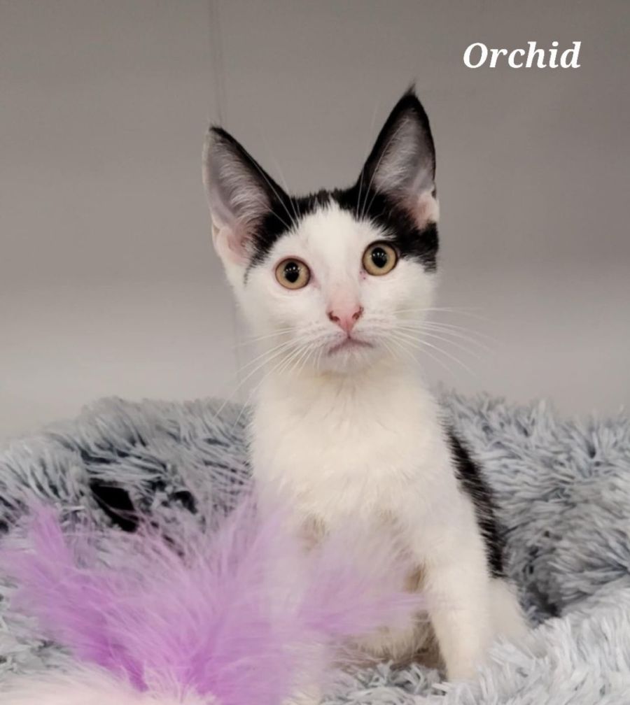 Orchid is a cheeky and mischievous girl who has endless energy. Watching her get herself into trouble is hilarious, but she still loves a good snuggle and will fall asleep in your lap.
