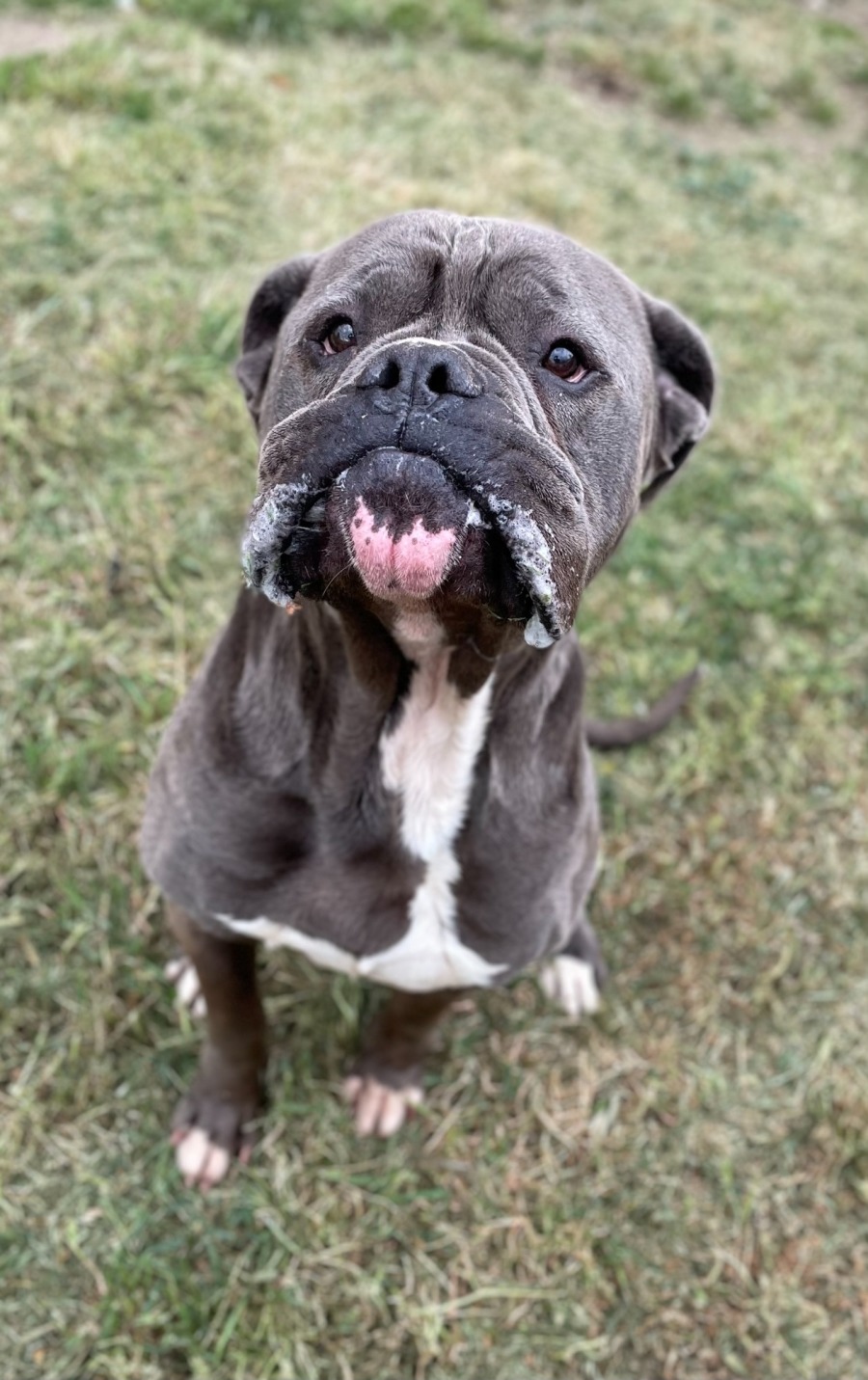 Meet Cyrus, a Neapolitan Mastiff mix with an imposing size that matches his equally large heart. At four years old, Cyrus exudes an impressive blend of tranquility and charisma, making him an ideal companion for those who appreciate the gentle grace of a big dog.