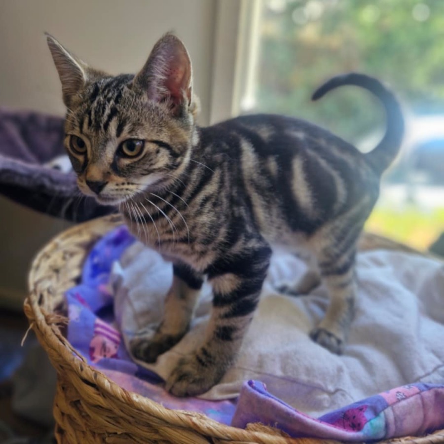Orion is an energetic little guy who loves to be at the center of attention! With his playful, fun-loving personality, he’s always ready to entertain. Whether it’s chasing after toys or engaging in a friendly game of pounce, Orion will keep you smiling with his kitten antics. But don’t let his energetic side fool you—Orion is also a sweet, cuddly boy who enjoys quiet moments of affection. He’s looking for a home where he can be loved and cherished as the little star he is.