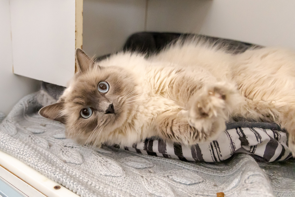 Step aside, commoners - Sir Louie the Ragdoll has entered the room! Louie is a regal gentleman with a soft, luxurious coat and piercing blue eyes that can melt even the chilliest of hearts. With his dashing good looks, he's got the charm of a movie star and the poise of a royal - and he knows it!