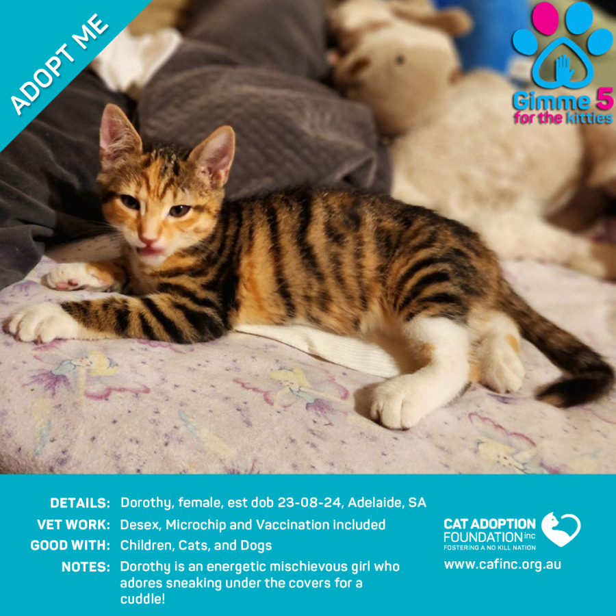 To adopt this kitty please contact Sayla on 0422 652 837 or email us at info@cafinc.org.au.