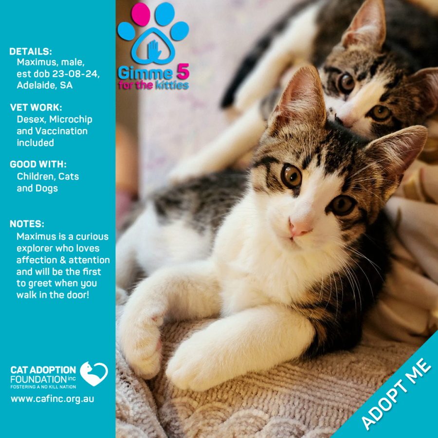 Donate to Maximus at Cat Adoption Foundation Incorporated via Shout