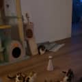 Likes: Playtime with toys, cuddling, purring, exploring new spaces, laying on his cat hammock in the cat, jumping around and attacking the presents under the Christmas tree, playing with his brother