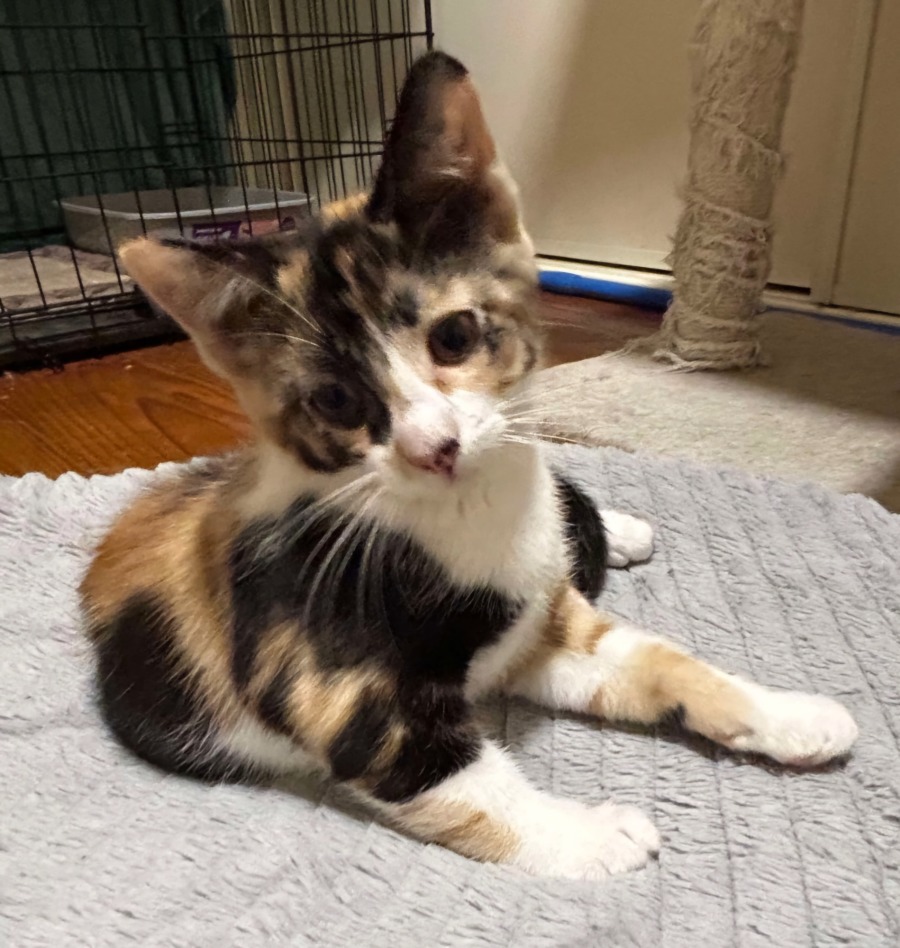 I am a friendly and playful kitten. I can be homed with children and other cats. I haven't been tested with dogs. I must be kept indoors only.
